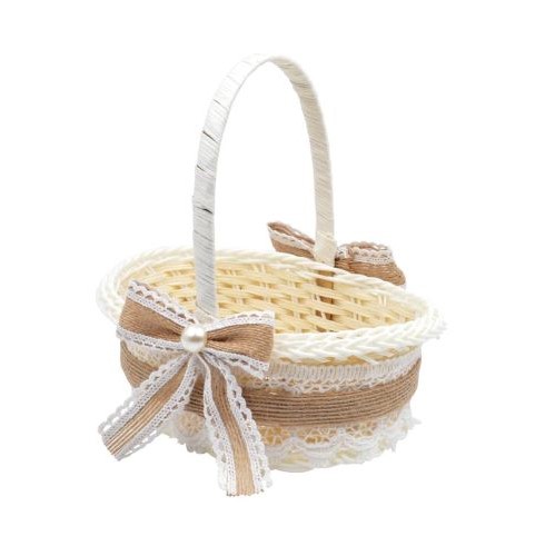 Cesta rústico para arras con flor en beige