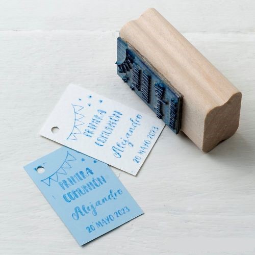Sello personalizado rectangular para Comunión guirnalda y estrellas 2,5x4cm.