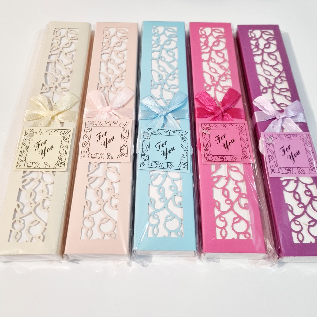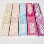 - El estuche con troquelado es una pieza clave para que tus invitadas puedan proteger el abanico de golpes o roces al llevarlo dentro del bolso cómodamente.