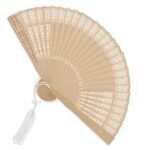 • Abanico madera calado es un detalle de boda barato que sirve para que no pasemos calor en los lugares donde las temperaturas son más bien altas