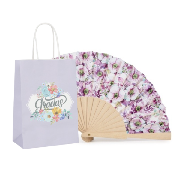 Con su diseño compacto y ligero, el abanico mini es fácil de llevar y guardar, lo que lo convierte en una opción encantadora y funcional. Además, se puede personalizar con colores, nombres o logotipos, añadiendo un toque único a tu evento y haciendo de este detalle un recuerdo inolvidable.