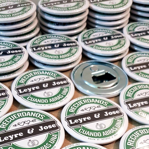Hice un pedido de estas chapas personalizado con los nombres de cada invitado y en dos días en casa !!! Genial !!!