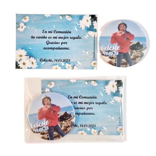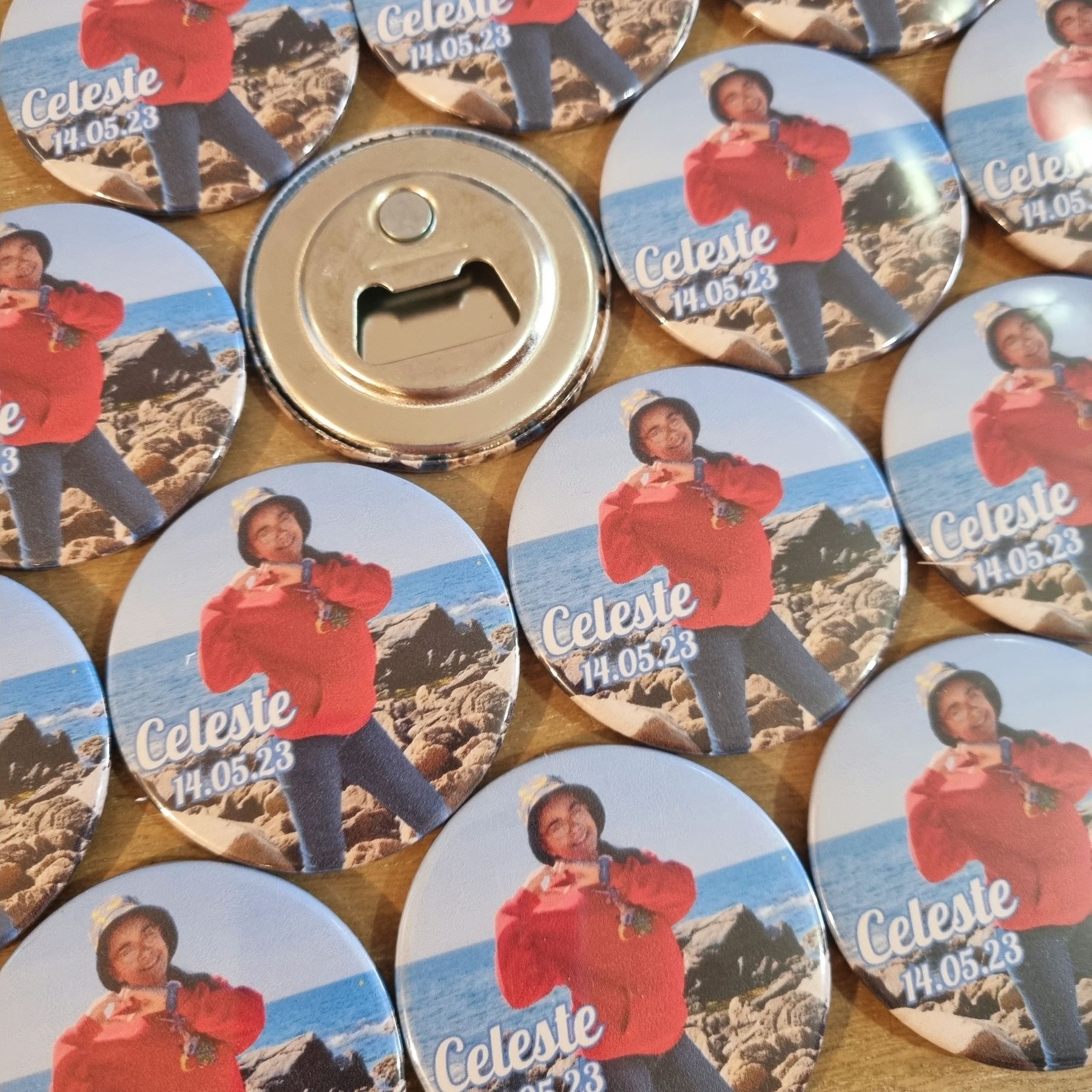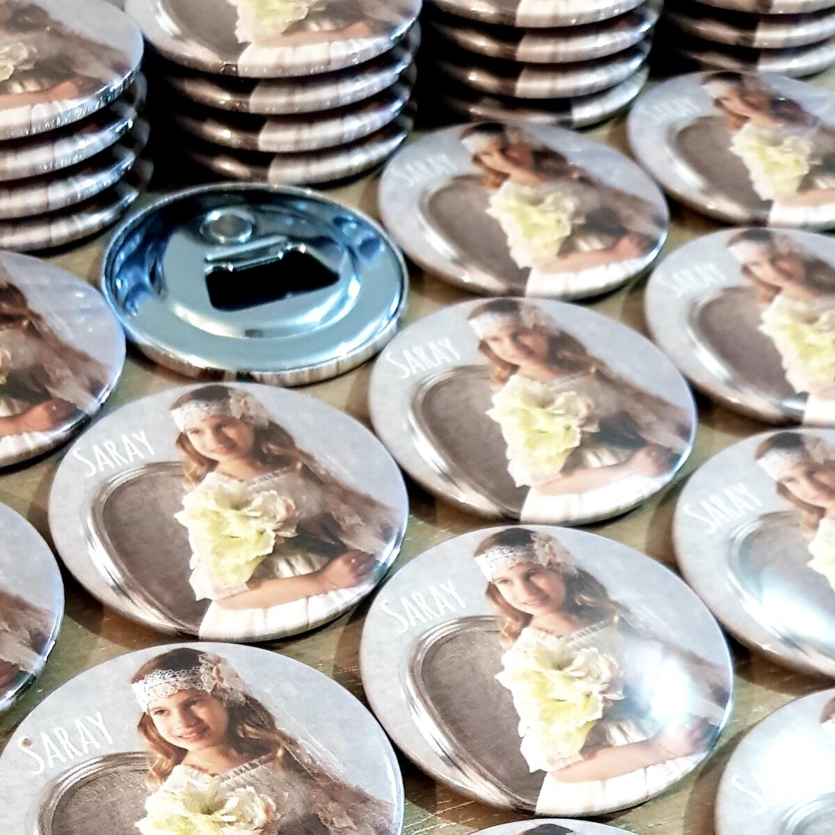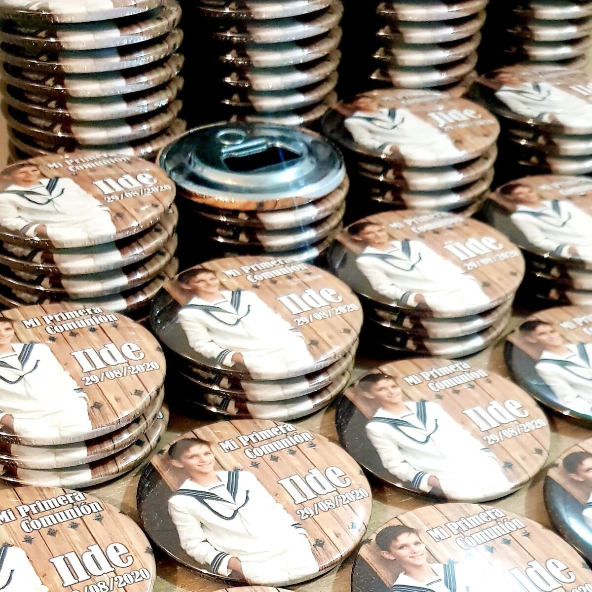 - Te presentamos nuestra chapa abrebotellas con imán personalizados con tu foto, para poder poner en la nevera, así tus invitados cada vez que abran el frigorífico se acordarán de lo bien que lo pasaron en tu Comunión.