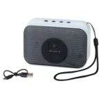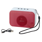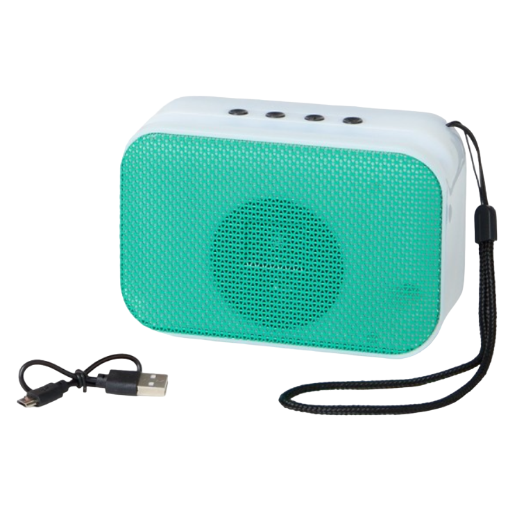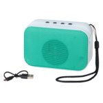 • Consigue estos altavoces de diseño bicolor, con rejilla variada y asa de transporte en negro. Ofrece función radio FM y ranura para soporte de teléfono móvil. Compatible con iOS y Android, incluye cable de carga USB y además está disponible en los colores azul, verde, negro, rojo y marrón.