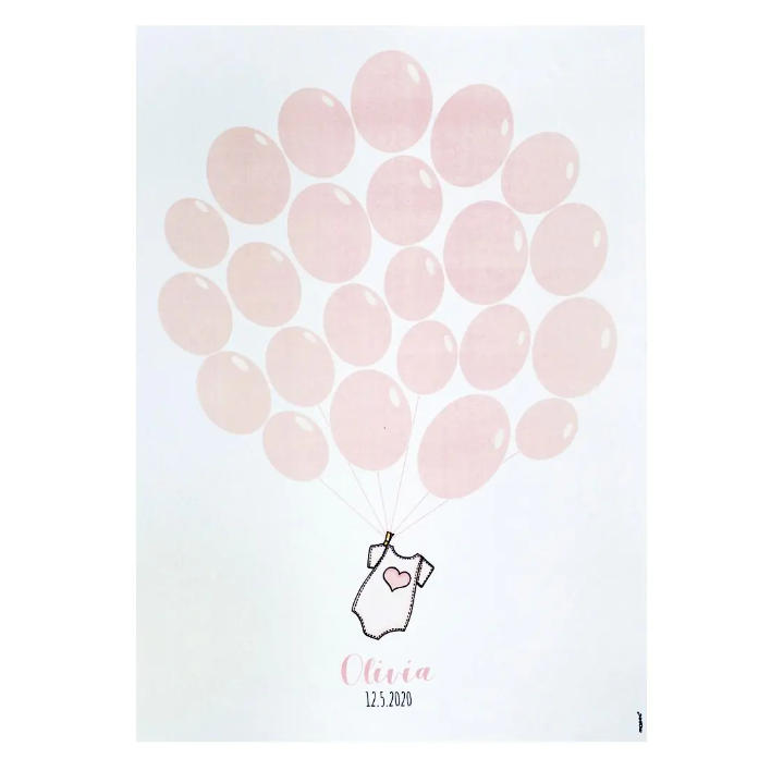 - Lámina árbol de huellas Bautizo con temática niña, Body rosa con globos