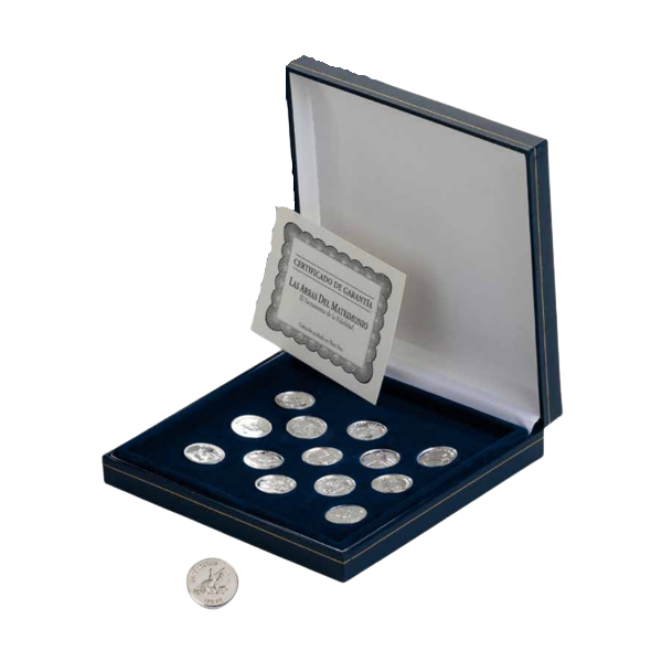 • Estas Arras de boda en Plata de 1ª Ley  925, componen un juego de trece monedas con temática de imágenes y frases bíblicas.