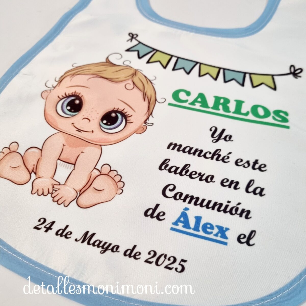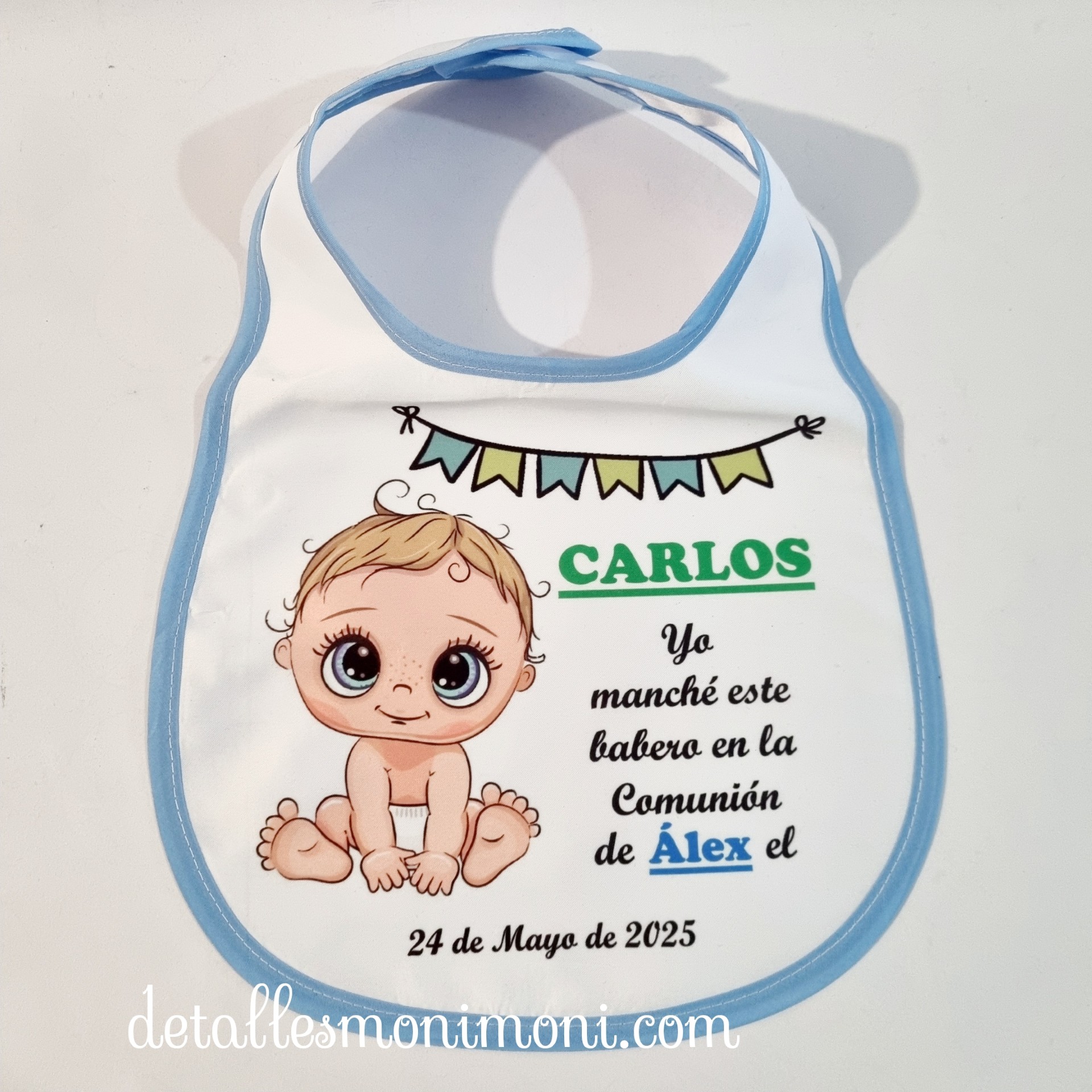 Celebra esta ocasión especial con un detalle que refleje el amor y la dedicación en cada momento de la celebración. ¡El babero personalizado para bebé es el detalle perfecto para la comunión!