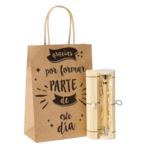 • Práctico bolígrafo en madera presentado en estuche de bambú que sorprenderá y será de gran utilidad en el día a día de los invitados.