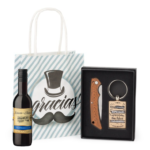 • Combinación perfecta de detalle de boda en bolsa kfrat, compuesto por un botella de vino y un set de navaja con llavero a juego con opción a grabado láser.