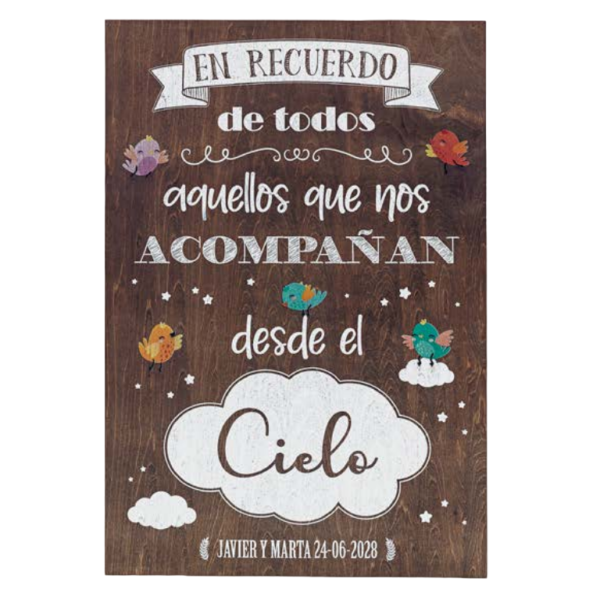 - Cartel de bienvenida ala fiesta, para conseguir un entorno agradable para tus invitados, que no pueden faltar en tu boda.