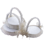 • Original cesta decorada con puntillas para presentar los prendidos de la boda en una amplia base de corcho blanco, se sirven sin alfileres.