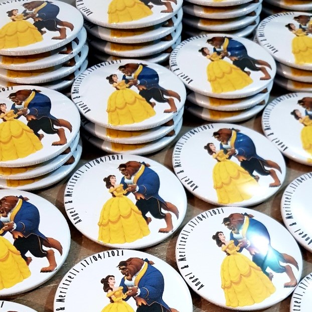 - Te presentamos nuestra chapa abrebotellas con imán con un bonito diseño de Bella & Bestia con vuestros nombres, para poder poner en la nevera, así tus invitados cada vez que abran el frigorífico recordarán de lo bien que lo pasaron en tu Boda.