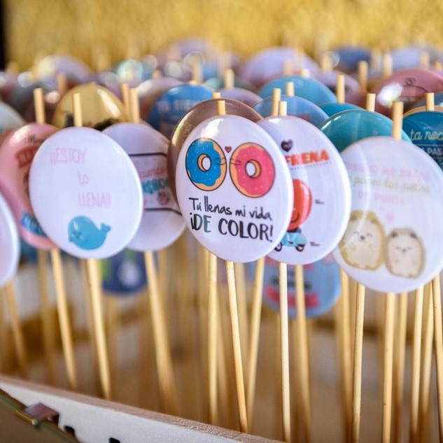 • Añade a tus chapas el cartel para que tus invitados sepan donde encontrar las chapas y darle a vuestra celebración un toque divertido.