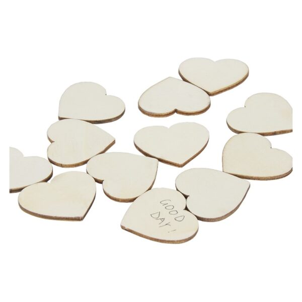 • Incluye 75 corazones de madera más un rotulador negro y una bolsita de organza blanca.