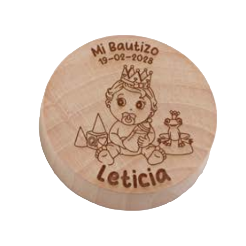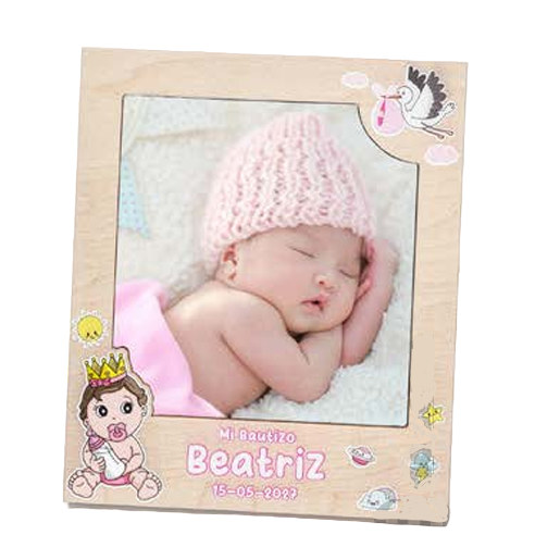 • Un detalle de bautizo pensado para sorprender a tus invitados con la primera foto de la bebé, en un marco perfecto para la ocasión, este alegre portafotos en madera natural conseguirá que tus invitados de bautizo recuerden con cariño ese día tan especial de tu hija y les haga recordar quién es la reina de la casa.