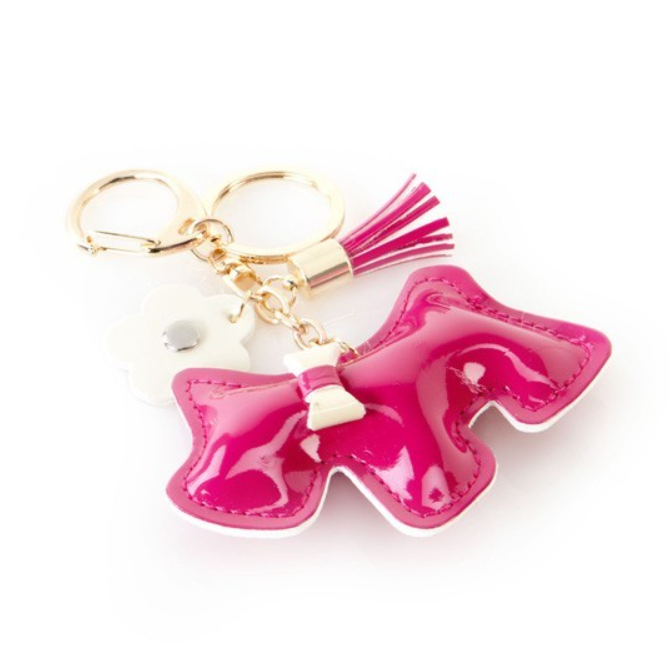 - Detalle de boda barato, es un moderno llavero en forma de perrito, el material es de polipiel y dándole un brillo precioso.