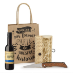 detalles para bodas Pack botella vino con navaja en caja bambú