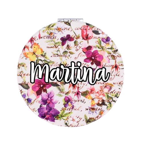 El espejo doble de polipiel con flores y escritos es un detalle elegante, práctico y lleno de encanto, ideal para sorprender a tus invitadas en bodas, comuniones y bautizos. Un regalo bonito que combina diseño floral, mensajes especiales y funcionalidad, perfecto para llevar siempre en el bolso.