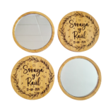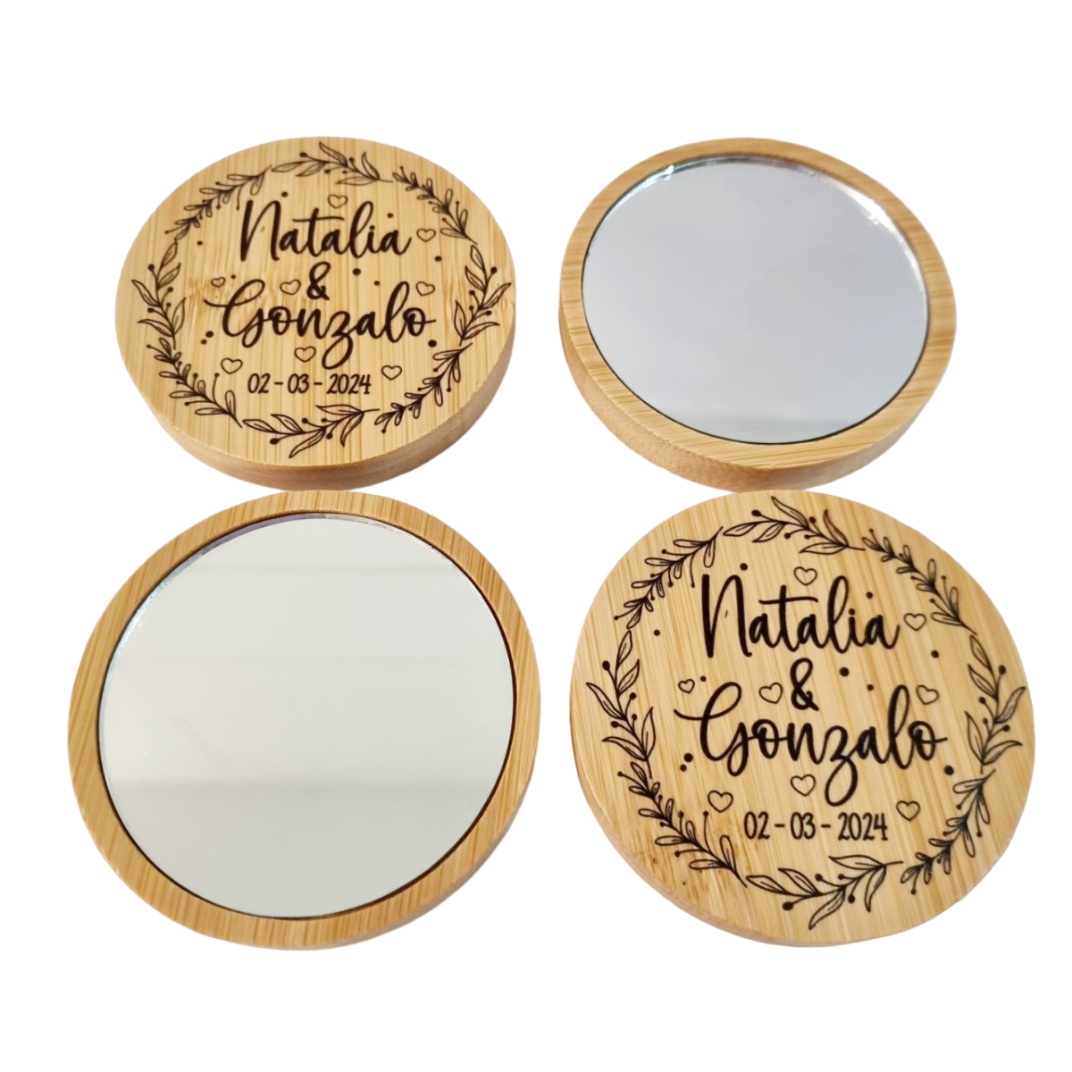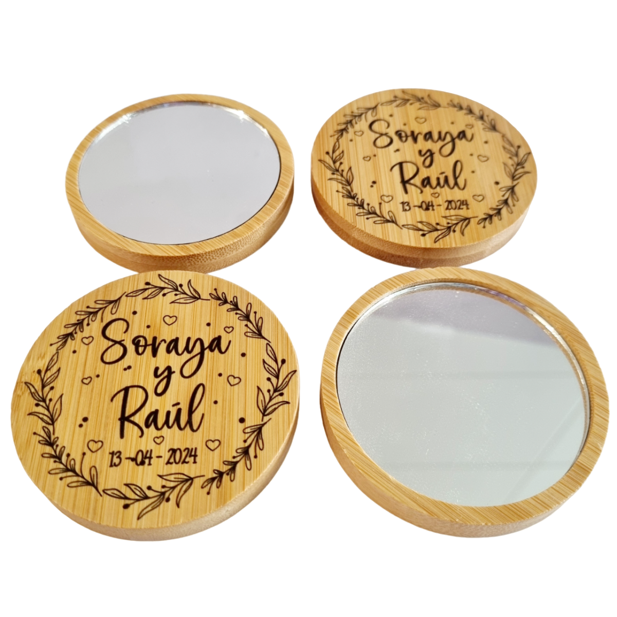 • Si estas buscando un detalle para regalar a tus invitadas que sea útil y bonito, los espejos de madera personalizados son el regalo perfecto para regalar en una fecha tan señalada como vuestra Boda