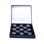 Se utilizan en matrimonios religiosos para el momento de la entrega de las arras del marido a la esposa. Estas trece arras de plata envejecida son ideales para el día de la celebración de tu boda. Presentadas en una elegante caja azul, no dudes en hacerte con ellas.