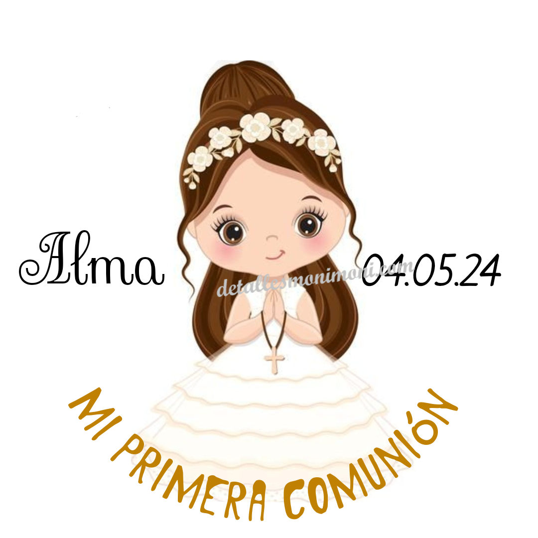 Inicio COMUNIÓN Cajitas, bolsas y demás Etiqueta para Comunión niña diadema flores