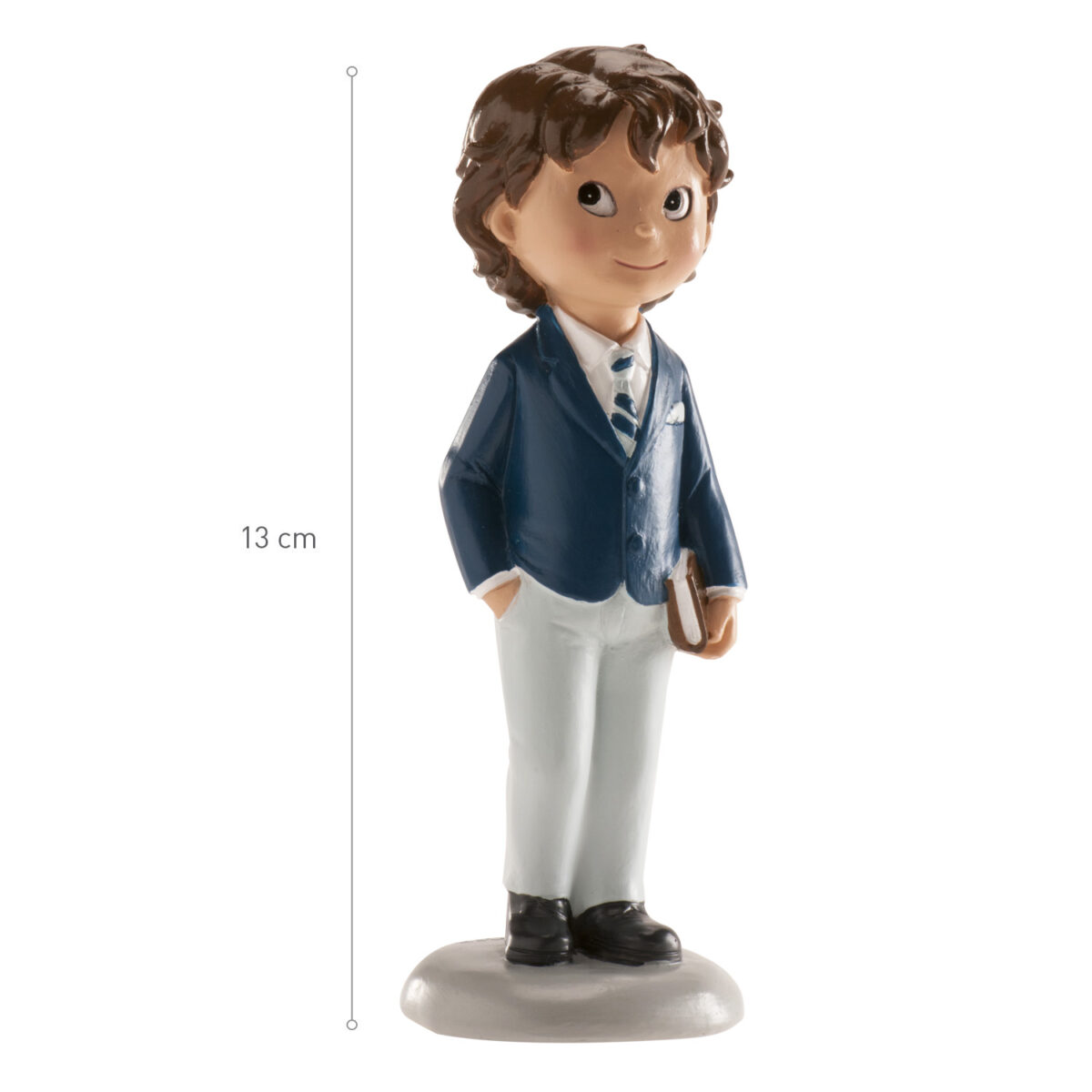 La Figura para Tarta de Comunión Niño con Traje Azul y Pantalón Blanco 13 cm es la elección perfecta para quienes buscan una figura de comunión elegante y moderna. Con su diseño sofisticado y su tamaño ideal, esta figura será el toque perfecto para hacer de la tarta de comunión una parte inolvidable de tu celebración.