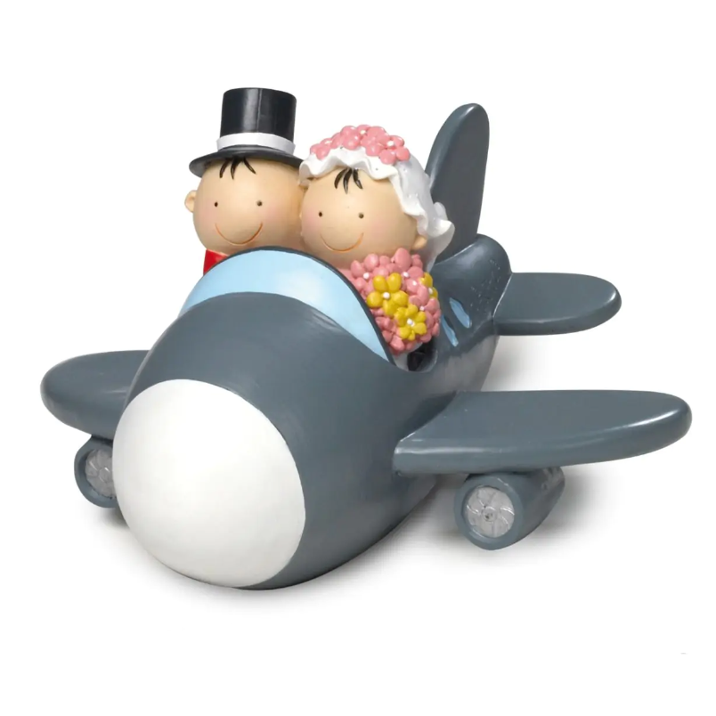 Más detalles sobre «Figura hucha para tarta novios avión»: