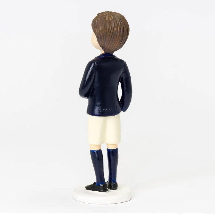 Figura para tarta comunión niño con americana azul y rosario