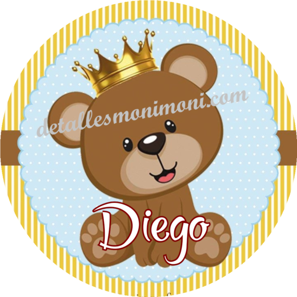 Etiqueta osito rey para Bautizo 0,25€