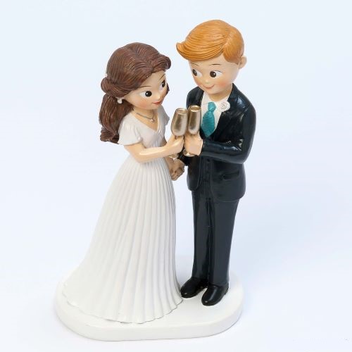 • Figura para tarta de Boda con novios haciendo un brindis , novio rubio.