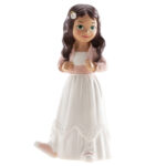Figura para tarta de comunión niña vestido largo y corona de flores