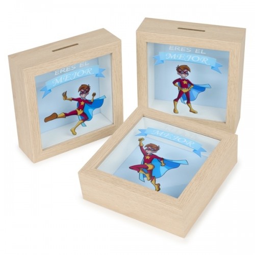 Más detalles sobre «Hucha de madera super héroe niño» como detalle para Comunión Niño: