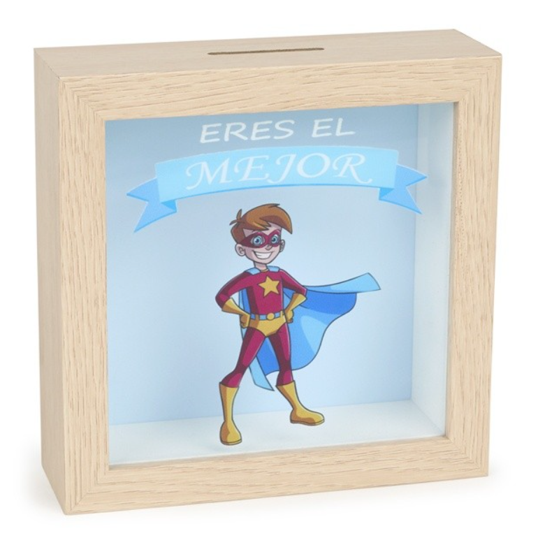 Hucha madera héroe niño