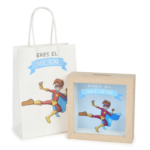 • También tienes la posibilidad de acompañarlo con una bolsa Kraft también del mismo diseño, consiguiendo una presentación inolvidable y, además, sostenible, porque son bolsas de material totalmente reciclable.