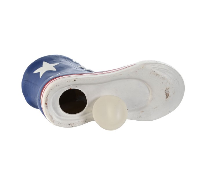 Fabricada en resina de alta calidad, esta hucha destaca por su acabado pintado a mano con todo lujo de detalles, incluyendo estrellas blancas decorativas y cordones reales, que aportan un aspecto realista y encantador. Cada pieza está cuidadosamente elaborada para ofrecer un producto resistente y duradero, ideal tanto para usar como hucha como para decorar la habitación infantil.