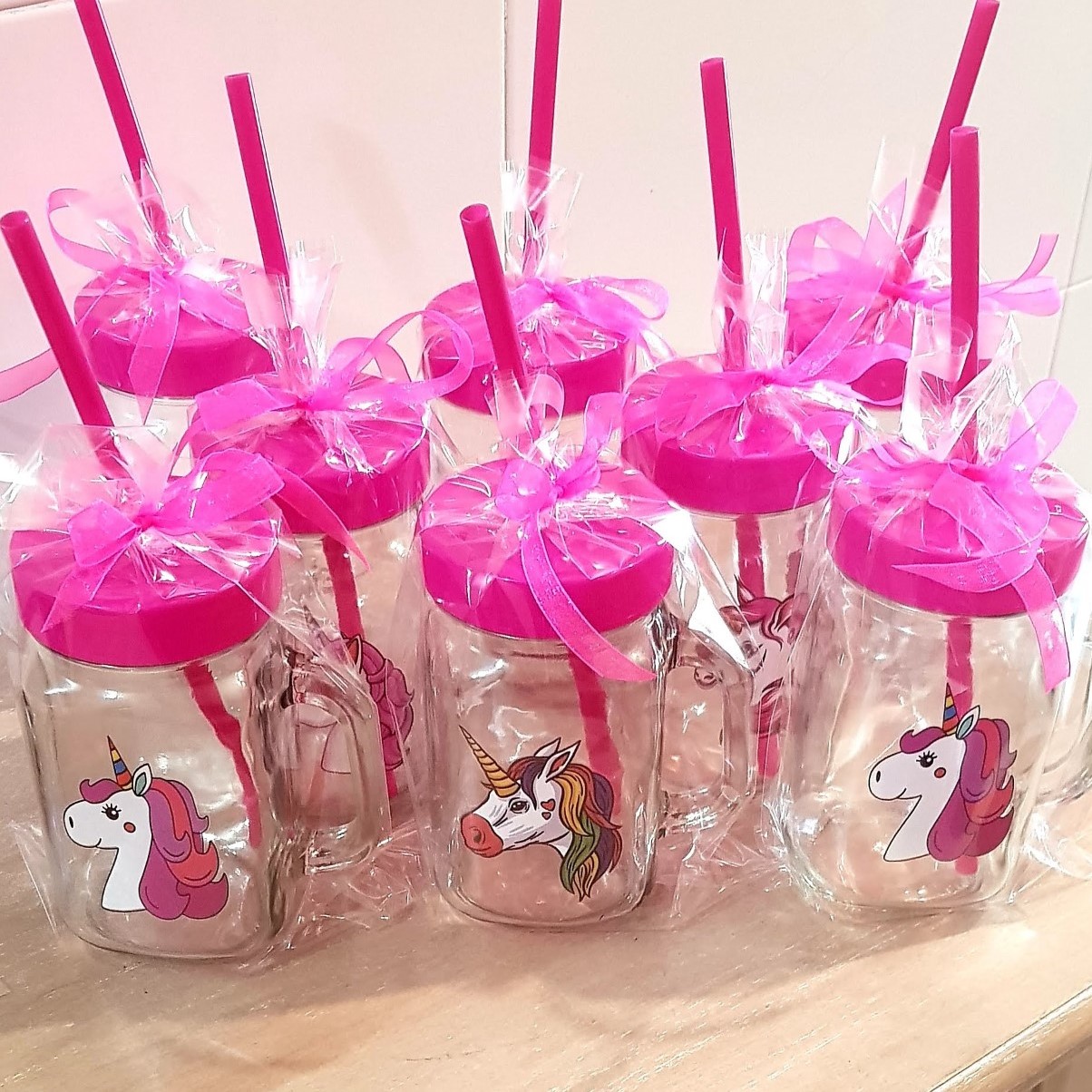 - Estas divertidas jarritas de cristal de unicornio las recibirás en surtido de diferentes modelos y diseños