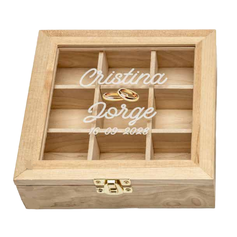 • ¿No sabes que regalar a esa novia que tanto quieres, tu amiga que se casa dentro de nada? Aquí te presentamos nuestro bonito joyero de madera con anillos personalizado, un bonito recuerdo que tendrá de por vida.