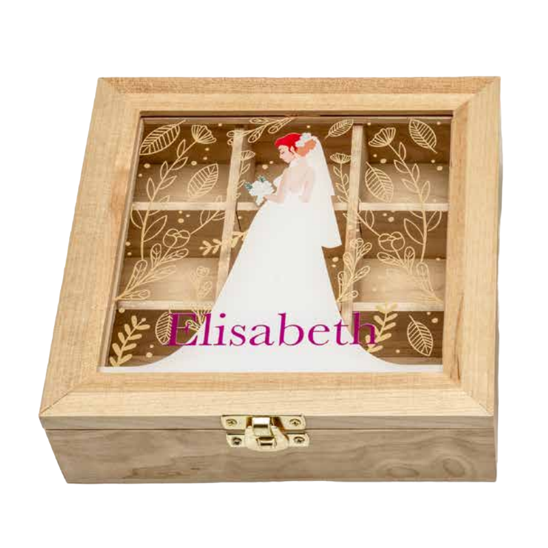 • ¿No sabes que regalar a esa novia que tanto quieres, tu amiga que se casa dentro de nada? Aquí te presentamos nuestro bonito joyero de madera personalizado especialmente para la novia, un bonito recuerdo que tendrá de por vida.