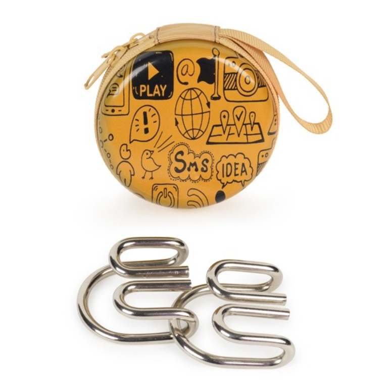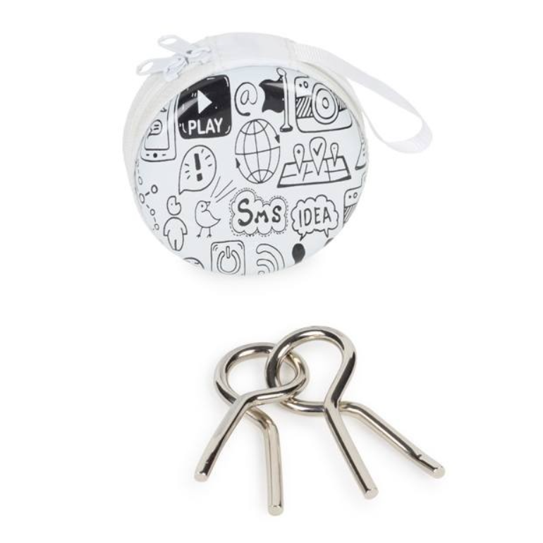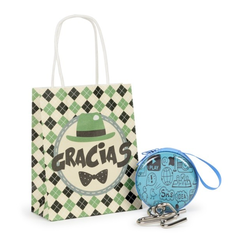 • Este divertido monedero guarda en su interior un entretenido “rompecabezas” en metal de 2 piezas que consiste en separarlas, con el que tus invitados se volverán locos para conseguirlo, ya que vienen en 4 juegos con mecánicas diferentes, que se podrán intercambiar de unos a otros.