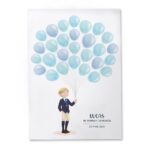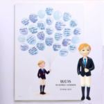 La lámina de firmas para comunión niño presenta un delicado árbol de huellas, donde familiares y amigos pueden dejar su huella dactilar, nombre o dedicatoria, creando un recuerdo único y emotivo 🌳✍️.