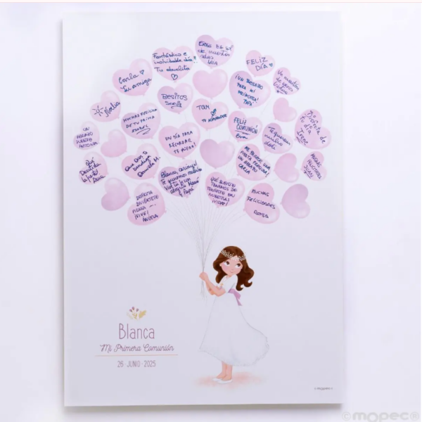 Una alternativa original al libro de firmas tradicional, perfecta para conservar el cariño y los mensajes de familiares y amigos en un día tan especial.