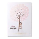 La lámina de firmas para comunión niña presenta un precioso árbol de huellas, donde familiares y amigos pueden dejar su huella dactilar, nombre o dedicatoria, formando un recuerdo único y emotivo 🌳✍️.