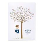 La lámina de firmas para comunión niño presenta un delicado árbol de huellas, donde familiares y amigos pueden dejar su huella dactilar, nombre o dedicatoria, creando un recuerdo único y emotivo 🌳✍️.