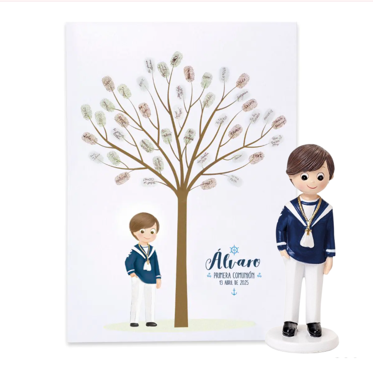 Haz que la Primera Comunión sea aún más especial con nuestro Pack Comunión Niño que incluye Lámina de huellas y Figura para tarta estilo marinero azul marino 💒👦⚓💙✨.
