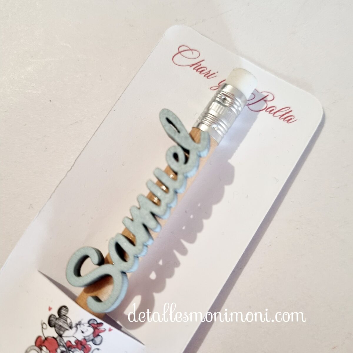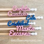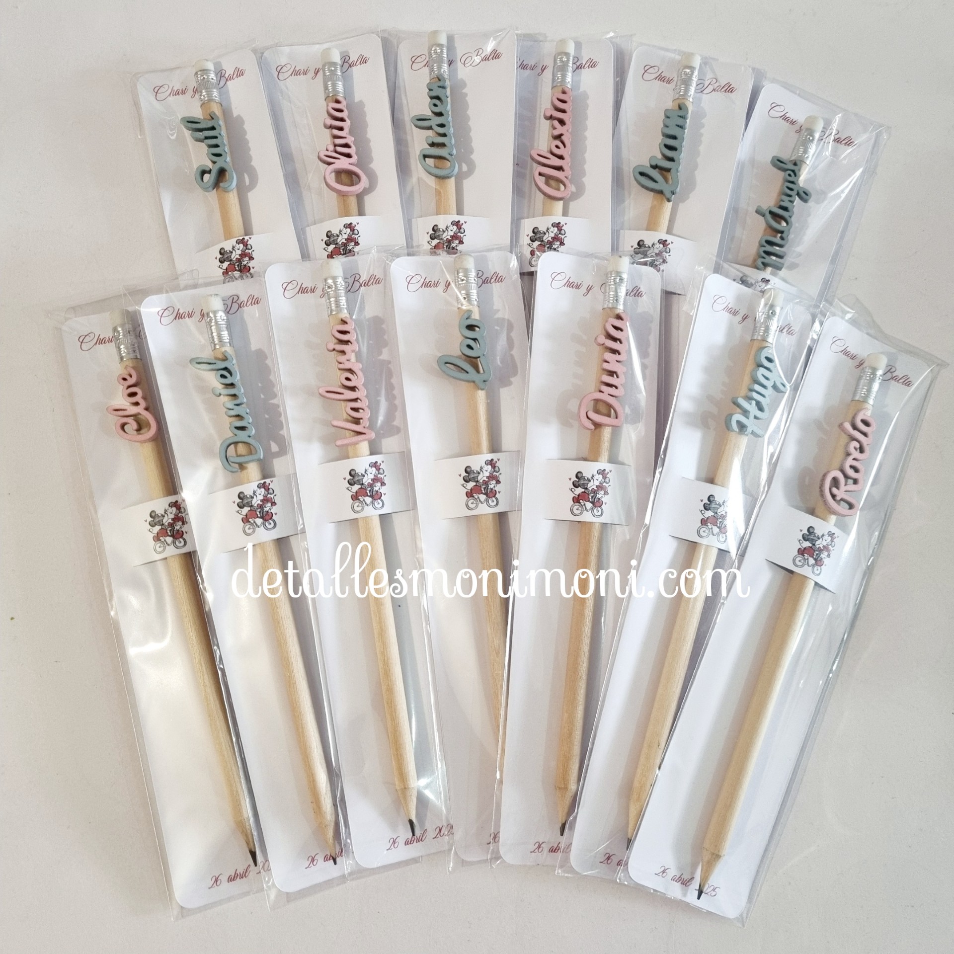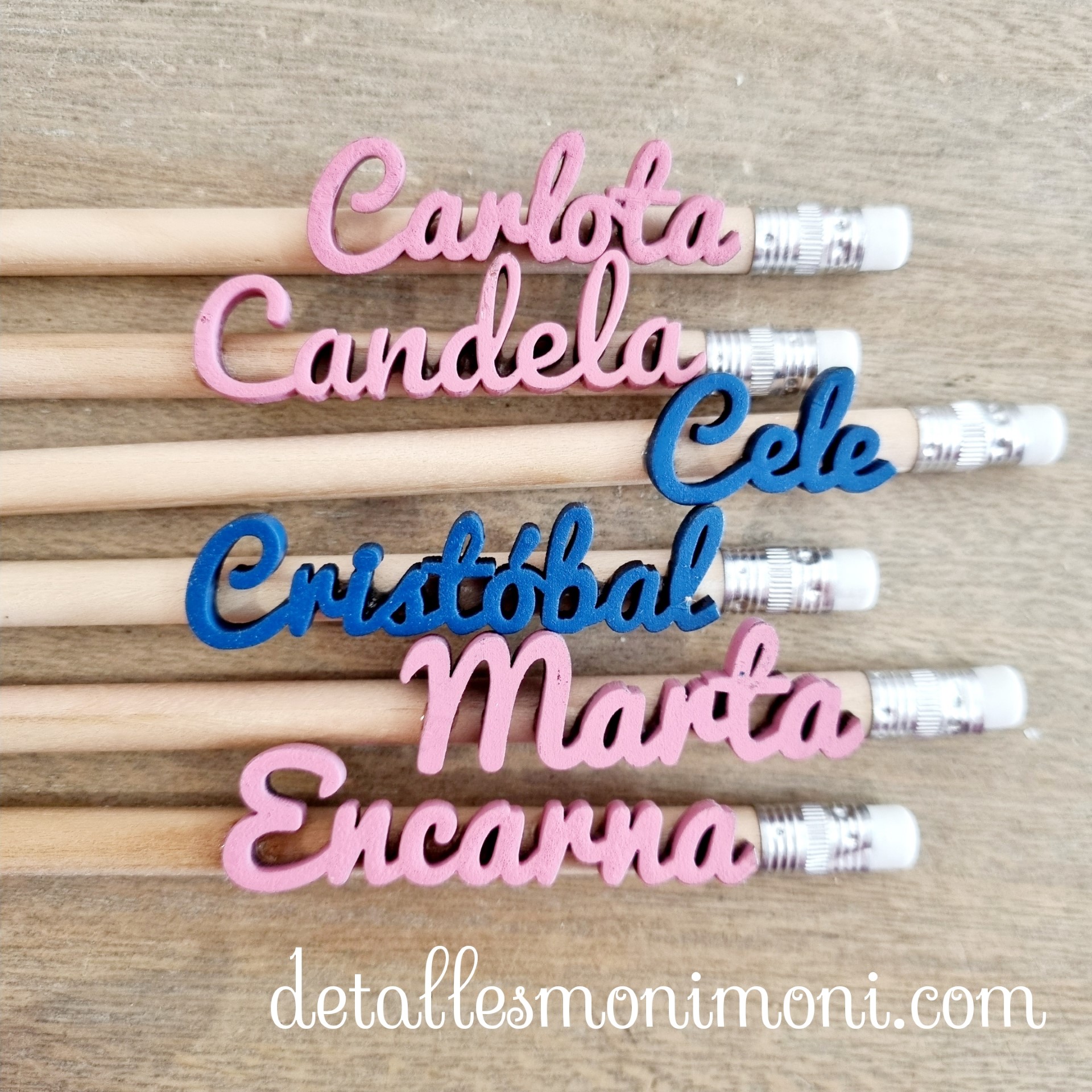 Lápiz personalizado con nombre de madera como marcasitios para boda o comunión de colores: un detalle único y original para tu evento