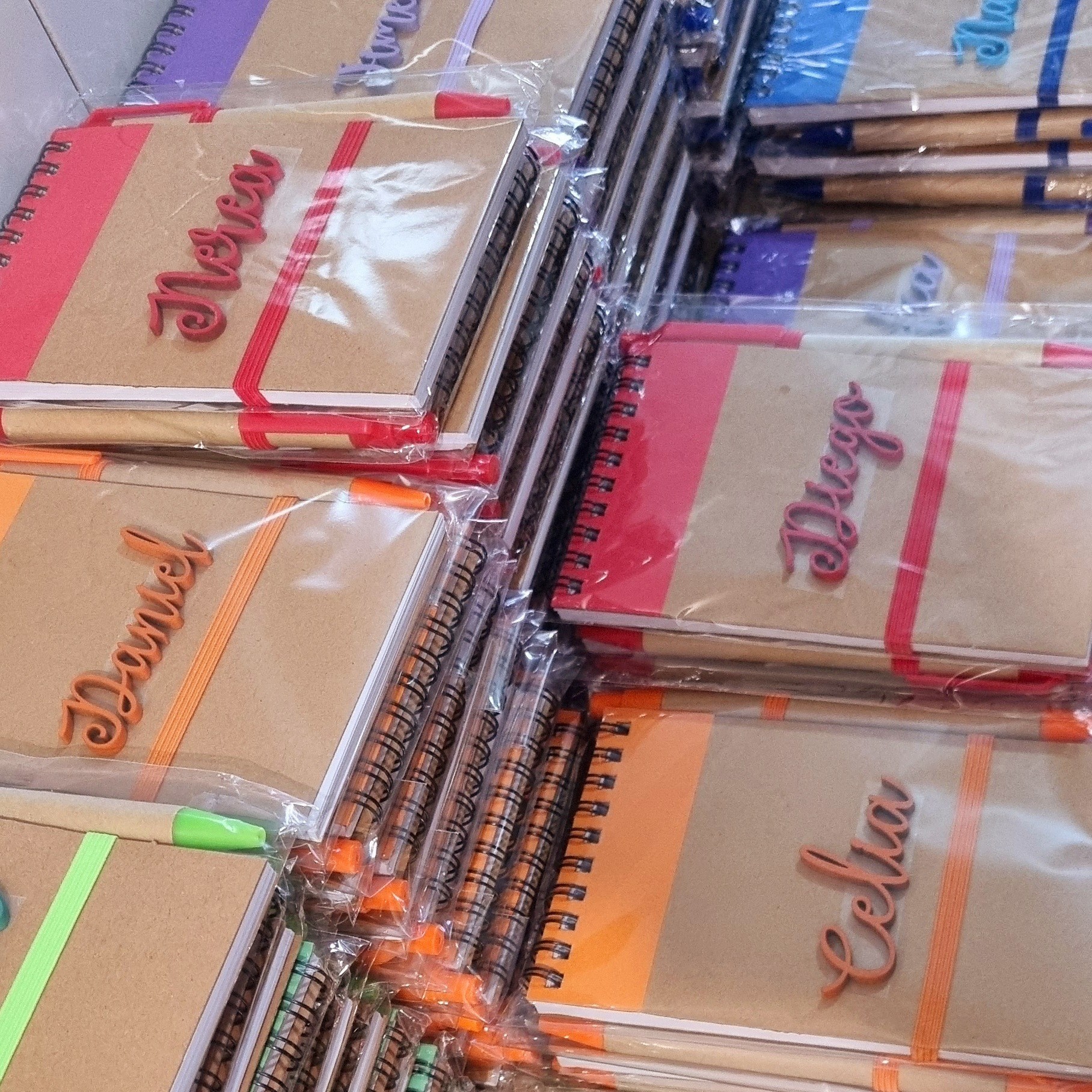 - La libreta podemos elegir entre 5 colores ; negro . rojo, naranja, beige, amarillo, verde claro, verde oscuro, azul y morado.