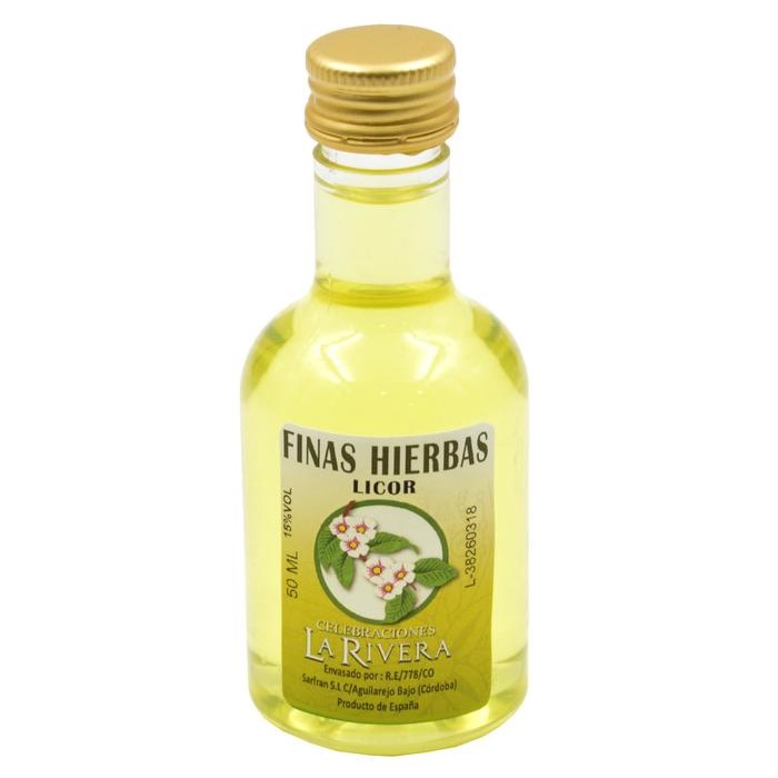 Licor de FINAS HIERBAS en botellita de pvc , contiene 40ml medida ideal como detalles para invitados.