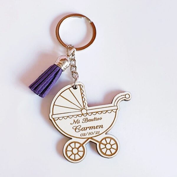 Llavero madera en forma de cochecito bebé – detalle bautizo: