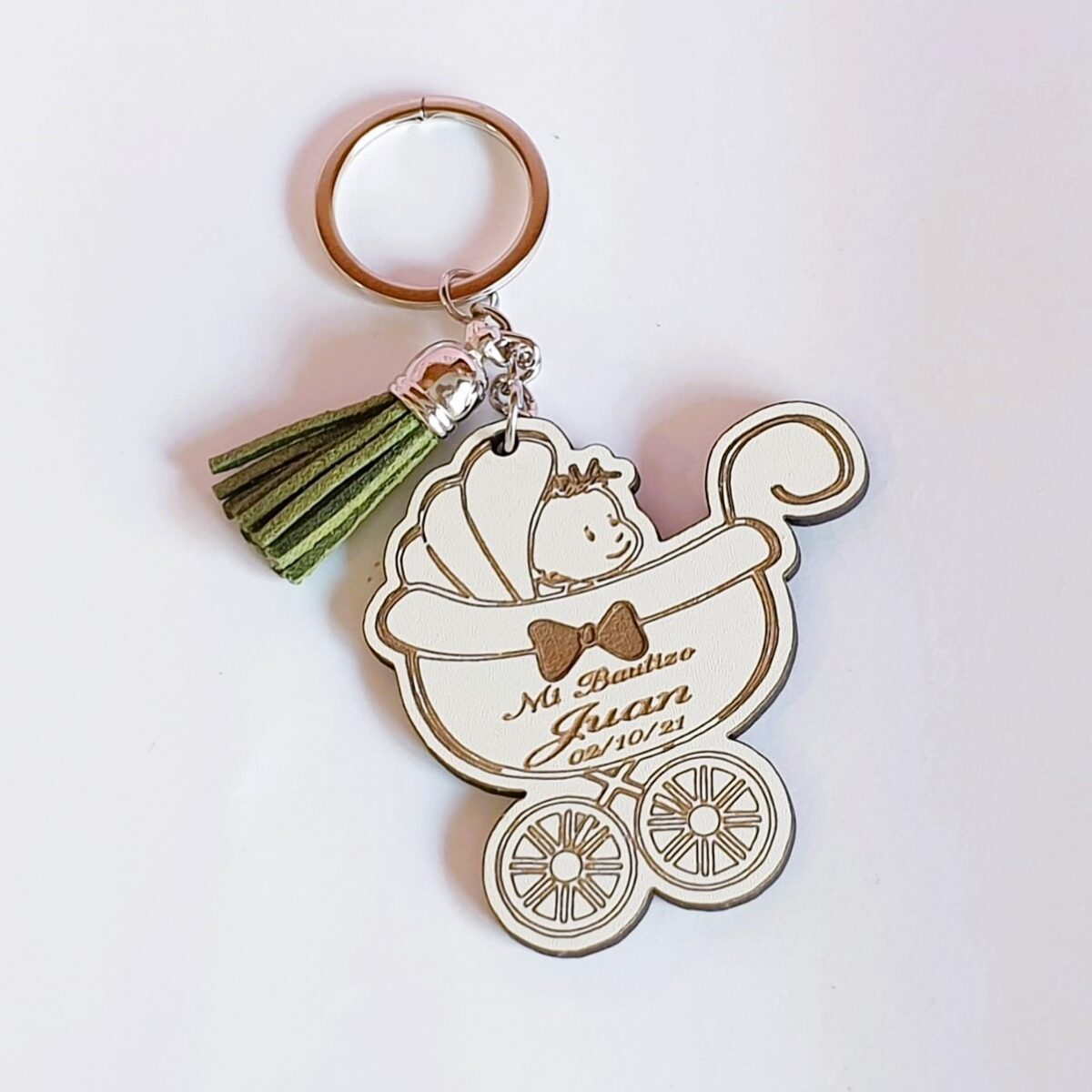 Inicio BAUTIZO Llaveros Bautizo Llavero madera personalizado carrito bebé