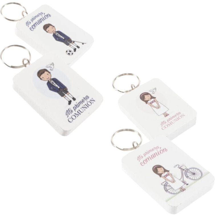 🔑🙏 Llavero Comunión Madera Blanca Niño y Niña